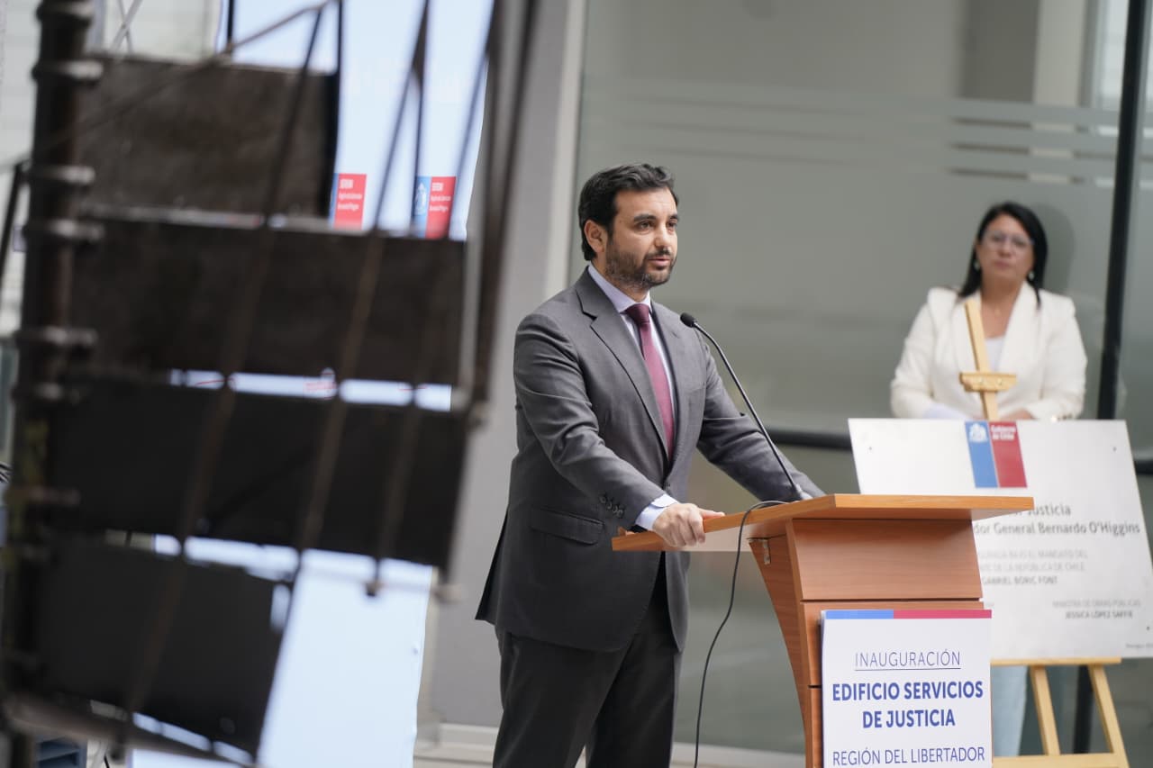 El ministro de Justicia y Derechos Humanos, Jaime Gajardo Falcón; el subsecretario de Justicia, Ernesto Muñoz Lamartine; y la subsecretaria de Derechos Humanos, Daniela Quintanilla; junto a autoridades de gobierno, inauguraron el nuevo Centro de Servicios de Justicia de la Región de O’Higgins. Este edificio incorpora infraestructura moderna, acceso universal y espacios de alto estándar destinados a acercar los servicios del sector justicia a las personas.