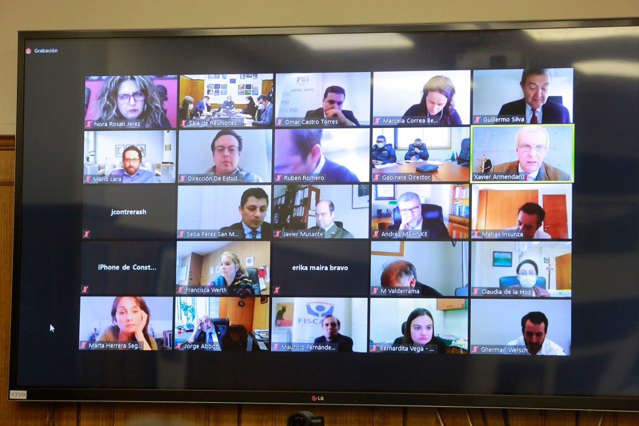 A la cita concurrieron -de manera telemática- el Presidente de la Corte Suprema, Guillermo Silva; el Defensor Penal Nacional, Andrés Mahnke; el director nacional de Gendarmería, Christian Alveal; la directora nacional del Sename, Claudia de La Hoz, así como representantes de Carabineros, PDI, Colegio de Abogados y Ministerio Público.