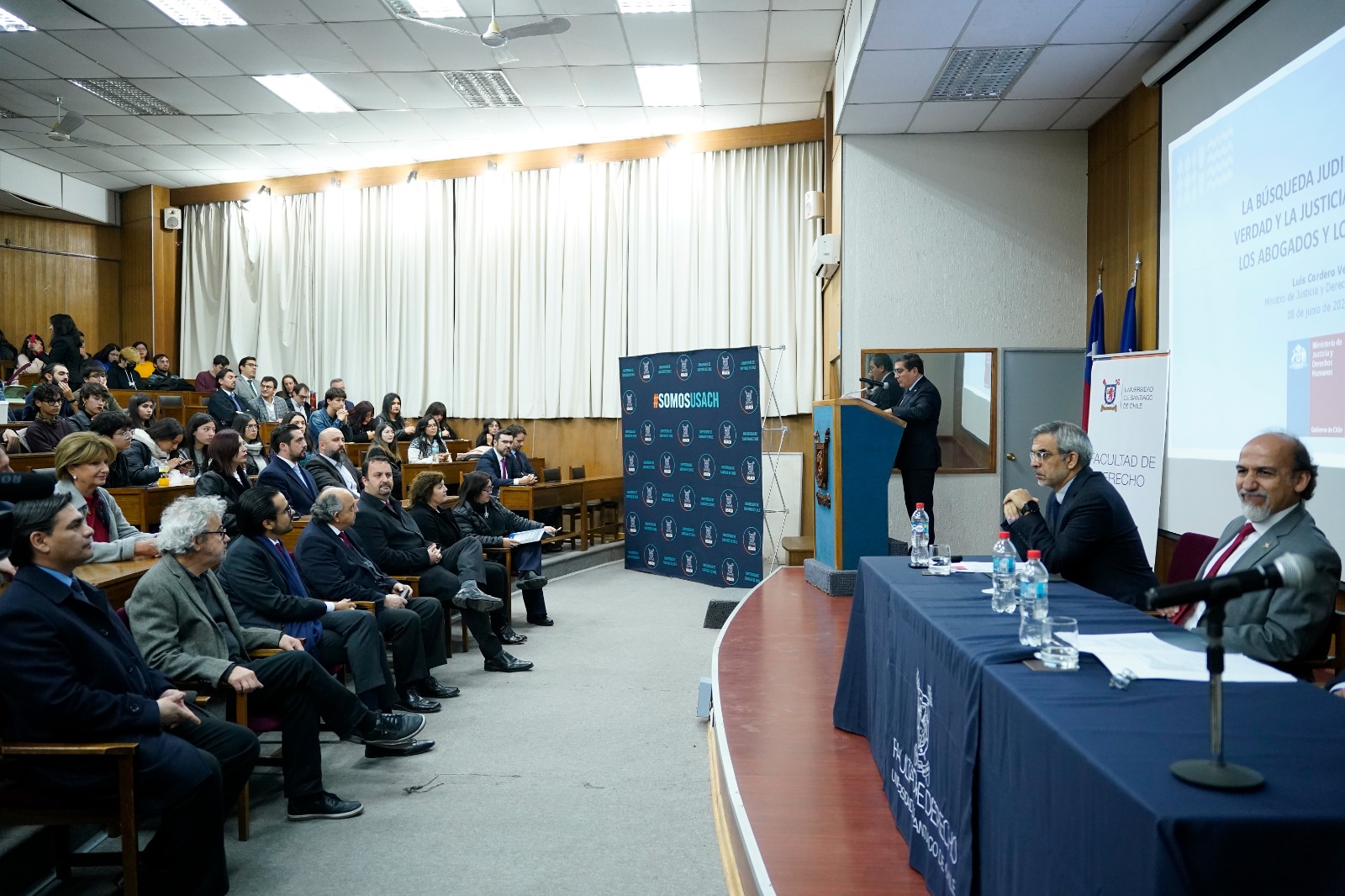 En la inauguración del año académico de la Facultad de Derecho de la Universidad de Santiago, el Ministro de Justicia y Derechos Humanos, Luis Cordero, realizó la charla magistral denominada “La Búsqueda de la Verdad y la Justicia: El Rol de abogados y jueces”. La instancia contó con la presencia del Rector, Rodrigo Vidal Rojas, diversos académicos y decenas de estudiantes de derecho.