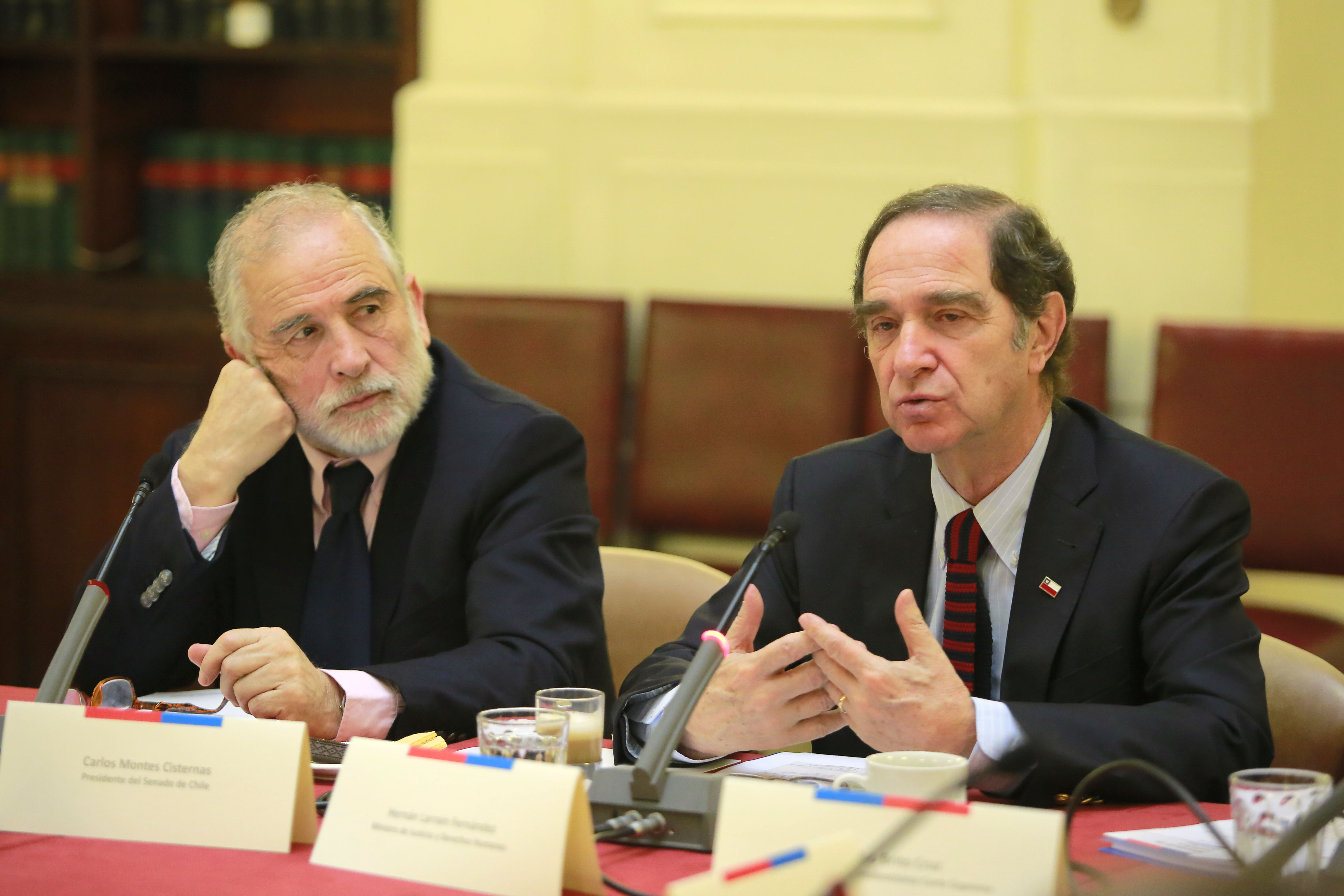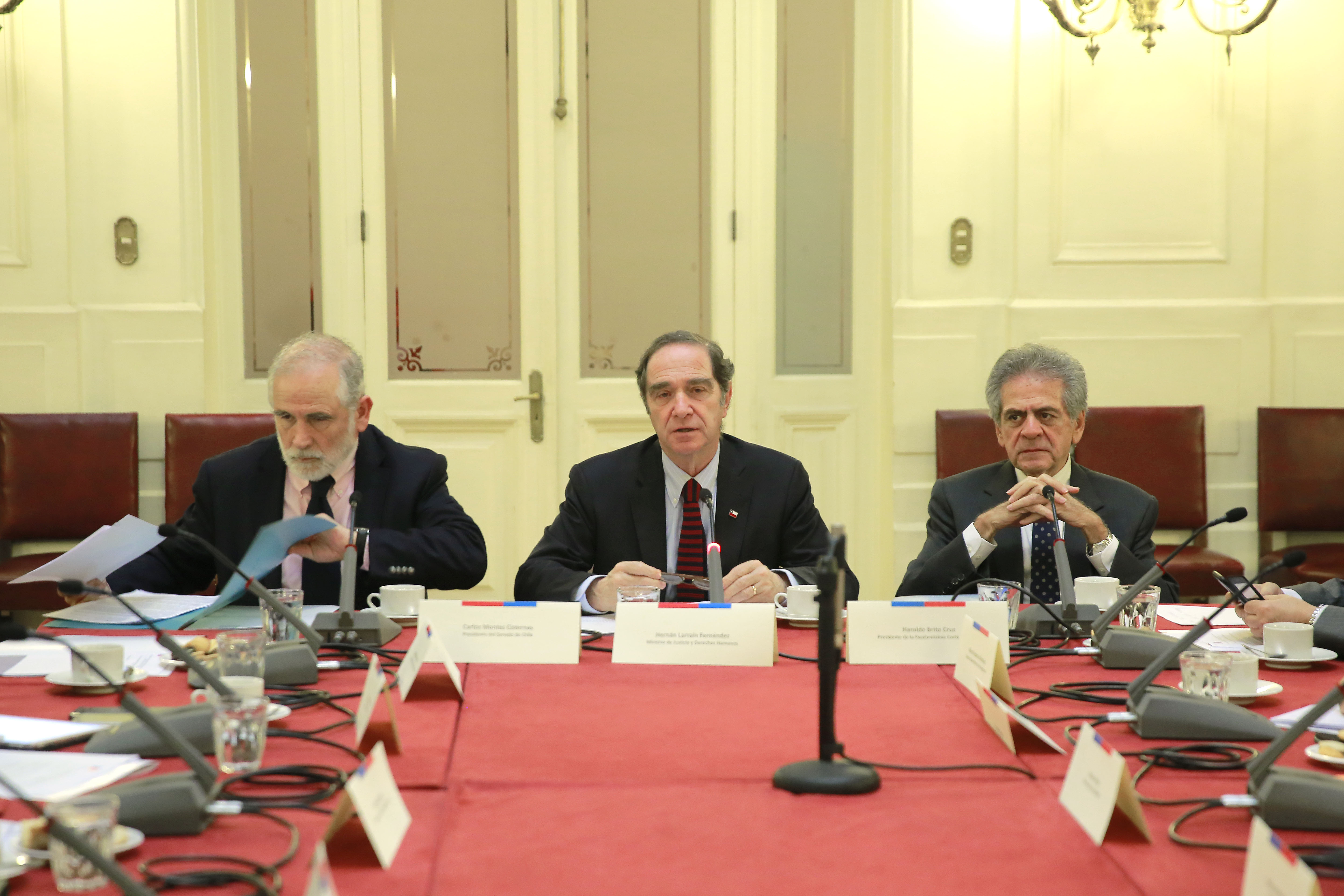 El secretario de Estado encabezó una reunión, efectuada en el ex Congreso Nacional en Santiago, con otros poderes e instituciones públicas vinculadas a la infancia y la adolescencia. En ese sentido, concurrieron el presidente de la Corte Suprema, Haroldo Brito; el titular del Senado, Carlos Montes; el fiscal nacional, Jorge Abbott; el director de la Policía de Investigaciones, Héctor Espinoza, el subsecretario de Trabajo, Fernando Arab; la Defensora de la Niñez, Patricia Muñoz; la directora nacional de Sename, Susana Tonda; entre otras autoridades.