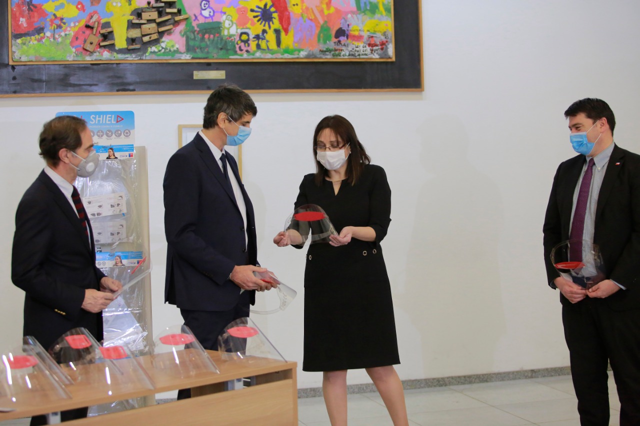 Para contribuir con la protección de quienes trabajan al cuidado de niños, niñas y adolescentes de SENAME, el Ministro de Ciencia, Tecnología, Conocimiento e Innovación Andrés Couve, junto a uno de los emprendedores seleccionados en el Reto de Innovación Covid-19, hicieron entrega de 2 mil escudos faciales reutilizables al Servicio Nacional de Menores, que serán distribuidos en diversas residencias de todo el país.
