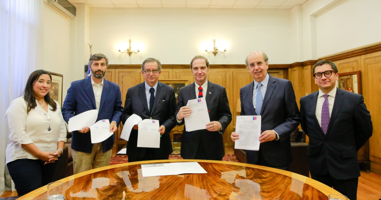 El ministro Hernán Larraín y el profesor titular de la Universidad de Chile, Arturo Prado, firmaron este acuerdo con el que se dará continuidad a este trabajo conjunto a través de la Comisión de Estudio Nueva Codificación Comercial de la casa de estudios y sus respectivas subcomisiones.