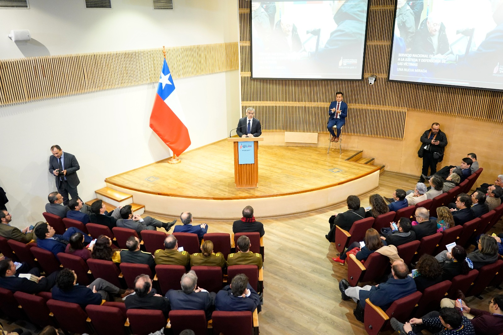 El secretario de Estado hizo la reflexión durante la cuenta pública ministerial, en la que estuvo acompañado por los Subsecretarios de Justicia, Jaime Gajardo; y de Derechos Humanos, Xavier Altamirano, así como de las Directoras y los Directores de servicios; Gendarmería de Chile, Sebastián Urra; del Servicio de Reinserción Social Juvenil, Rocío Faúndez; del Servicio Médico Legal, Marisol Prado; de la Defensoría Penal Pública, Carlos Mora; de la Corporación de Asistencia Judicial Metropolitana, Rodrigo Mora; director subrogante del Registro Civil e Identificación, Jorge Zuñiga.
