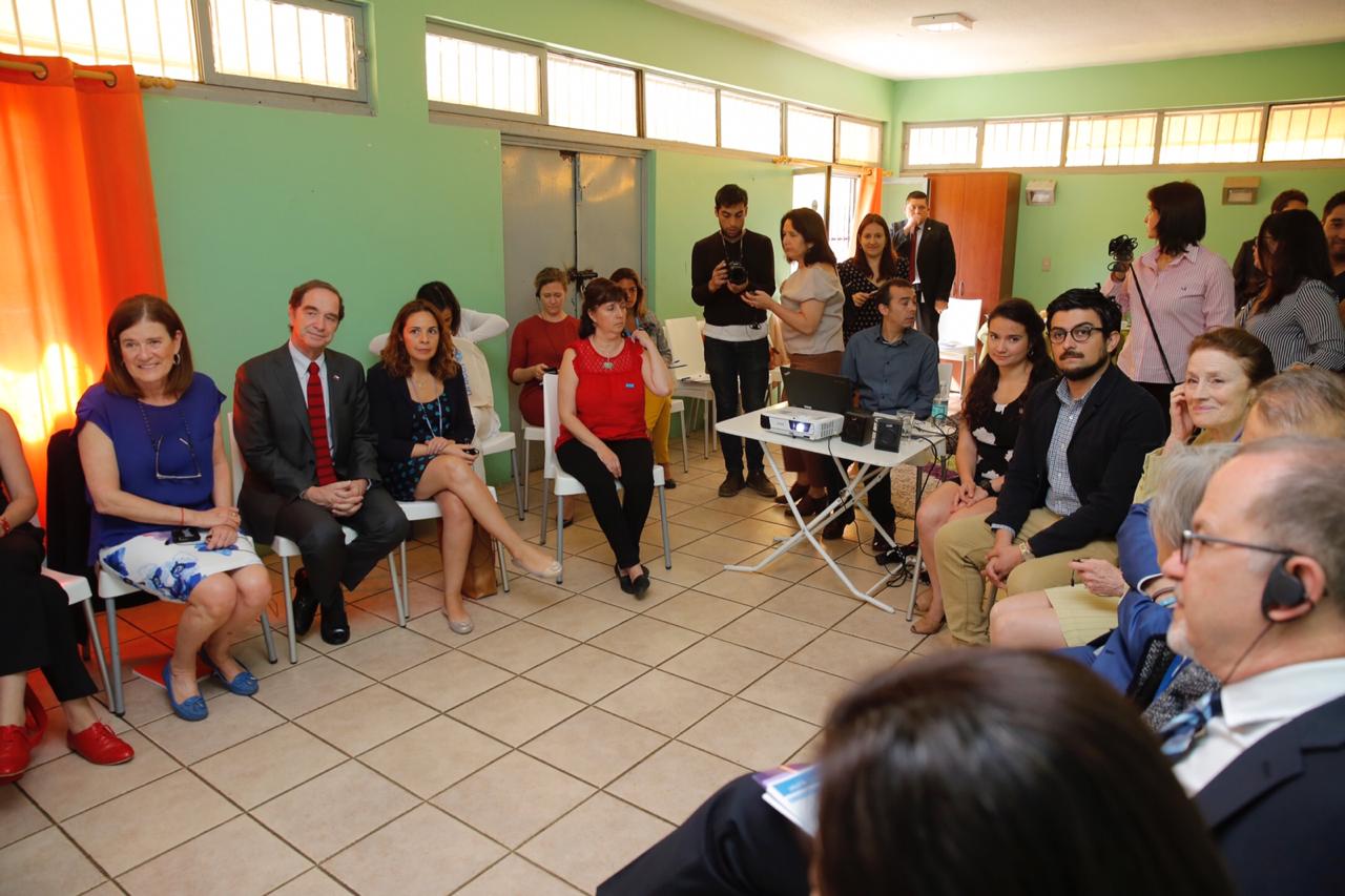 En la visita estuvo acompañada del ministro de Justicia y Derechos Humanos, Hernán Larraín; la directora del Sename, Susana Tonda; la defensora de la Niñez, Patricia Muñoz, y otros representantes del organismo internacional y del servicio.