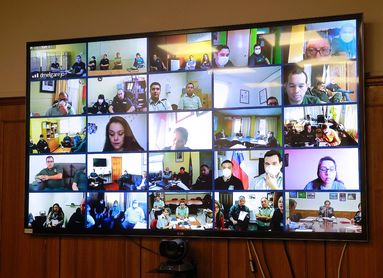 El Ministro de Justicia y Derechos Humanos, Hernán Larraín, y el Subsecretario de Justicia, Sebastián Valenzuela, encabezaron una reunión por videoconferencia con el director nacional de Gendarmería, Christian Alveal, junto con los 15 directores regionales de la institución y con los 83 alcaides de todos los recintos penitenciarios del país.