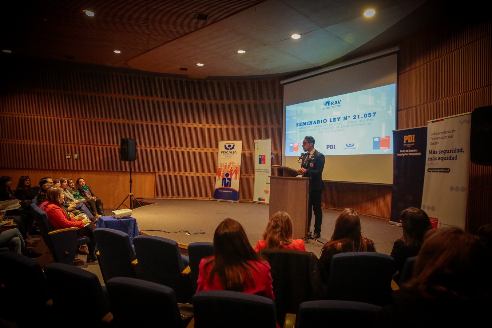 Acompañando la implementación de la tercera etapa de la Ley de Entrevistas Videograbadas, se desarrolló el “Seminario sobre la Ley 21.057, que regula las entrevistas grabadas en videos y otras medidas de resguardo a menores de edad víctimas de delitos sexuales”, organizado por la Red de Atención a Víctimas de la Región Metropolitana y la subcomisión de infancia, coordinación regional metropolitana de la Seremi de justicia y Derechos Humanos.